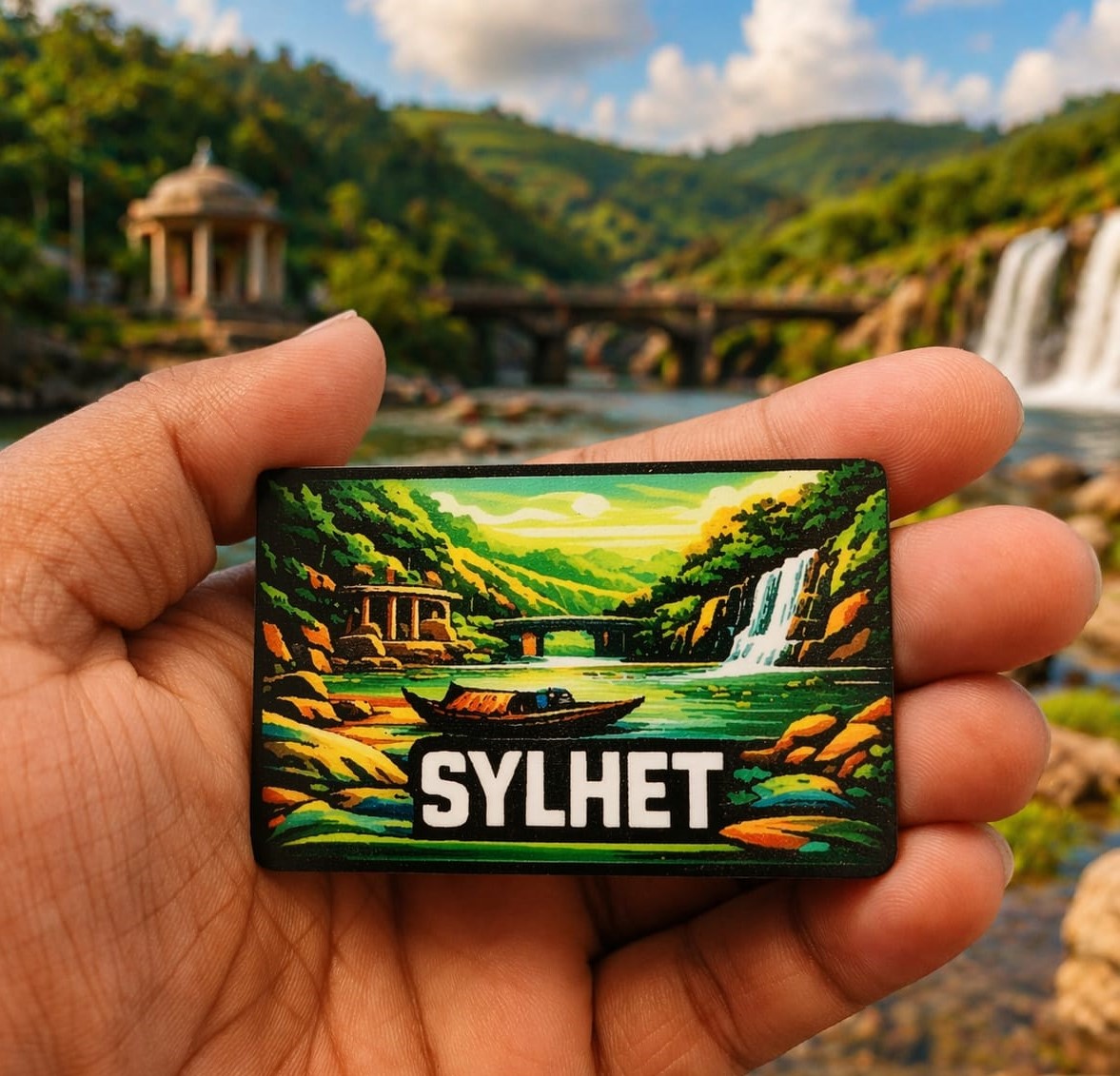 Perfect for travel enthusiasts, souvenir collectors, or anyone who appreciates scenic beauty, this magnet is a wonderful keepsake or gift. Whether you’re reminiscing about a trip to Sylhet or simply adding a touch of nature-inspired art to your space, this magnet offers a blend of culture, tranquility, and style.